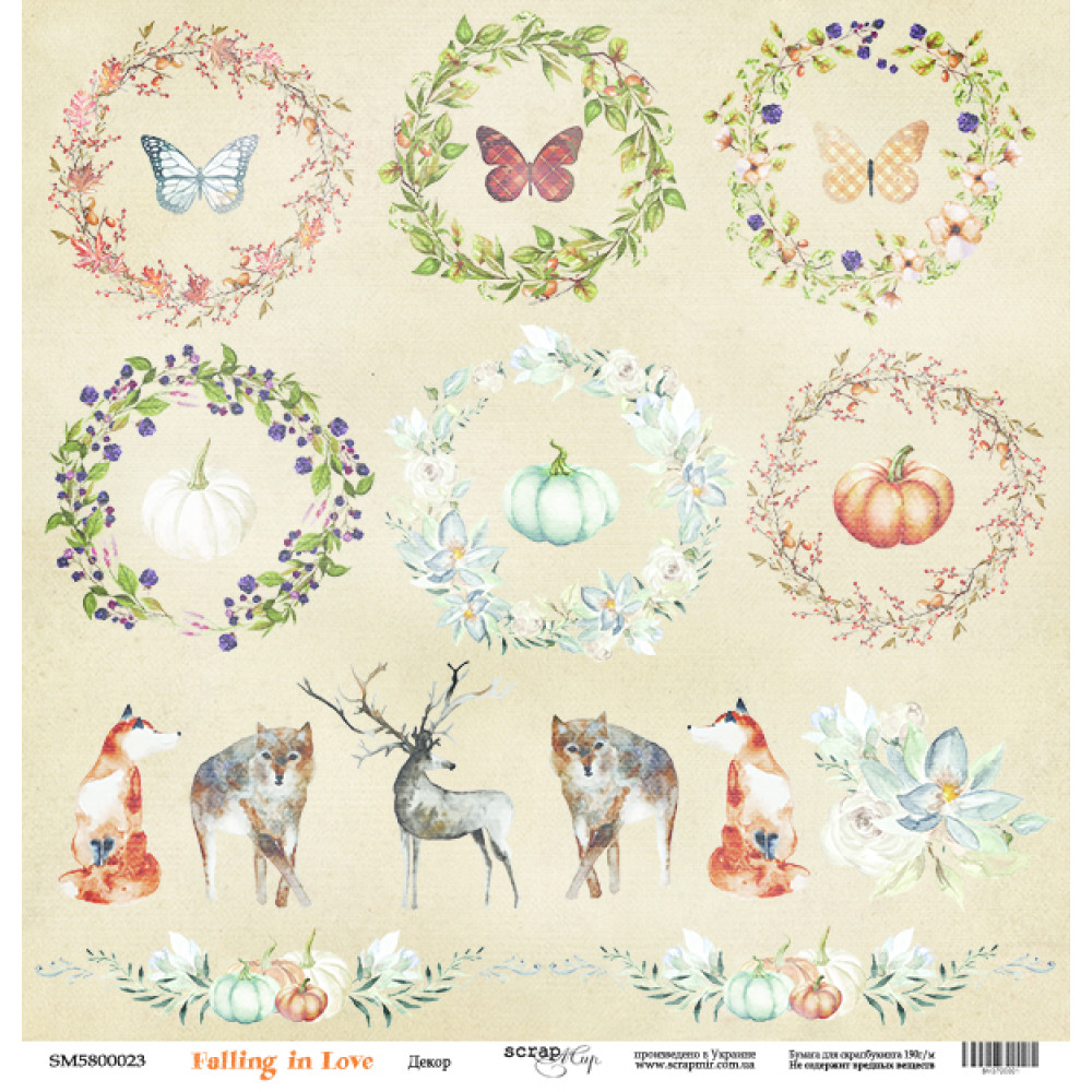 Лист одностороннього паперу 30x30 від Scrapmir з колекції Falling in Love 1шт.