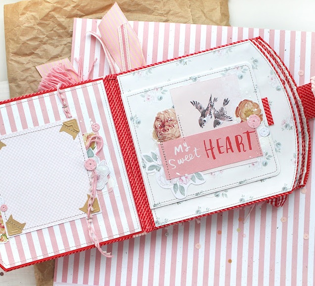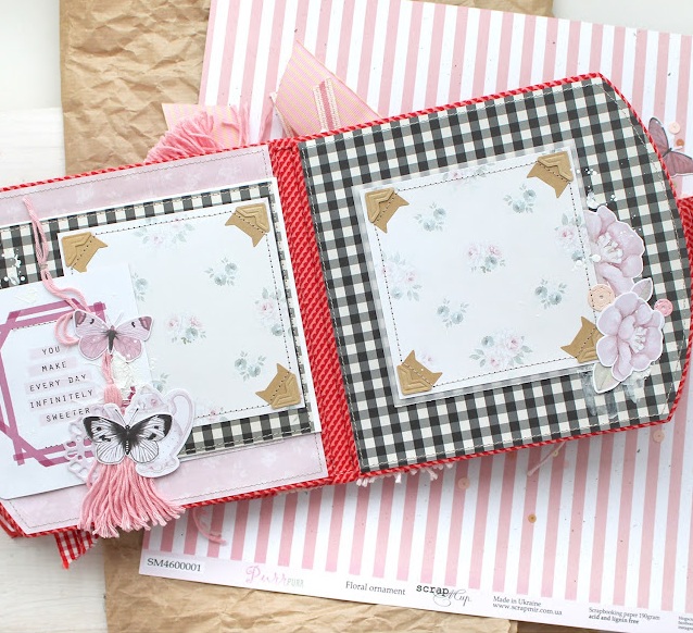 Для створення альбому я міксувала папір та прикраси з різних колекцій та вийшло дуже цікаво! Особливо мені сподобалося поєднання принтів з колекцій "Pur Pur", " La Creme" і " Some days " , а ще незамінним помічником в оформленні став лист для вирізання з квітами !