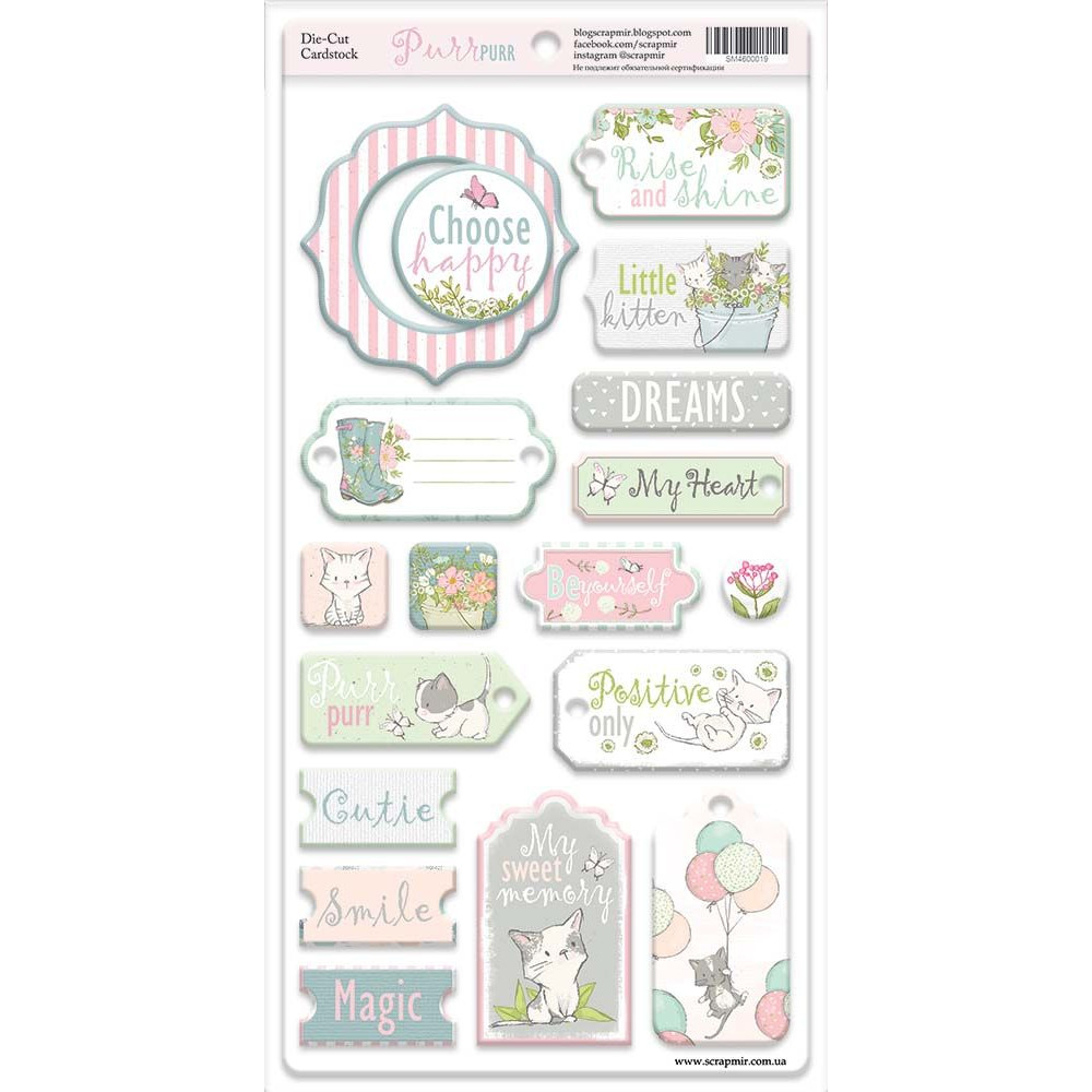 Чипборд для скрапбукінгу 18шт від Scrapmir Pur Pur (ENG)