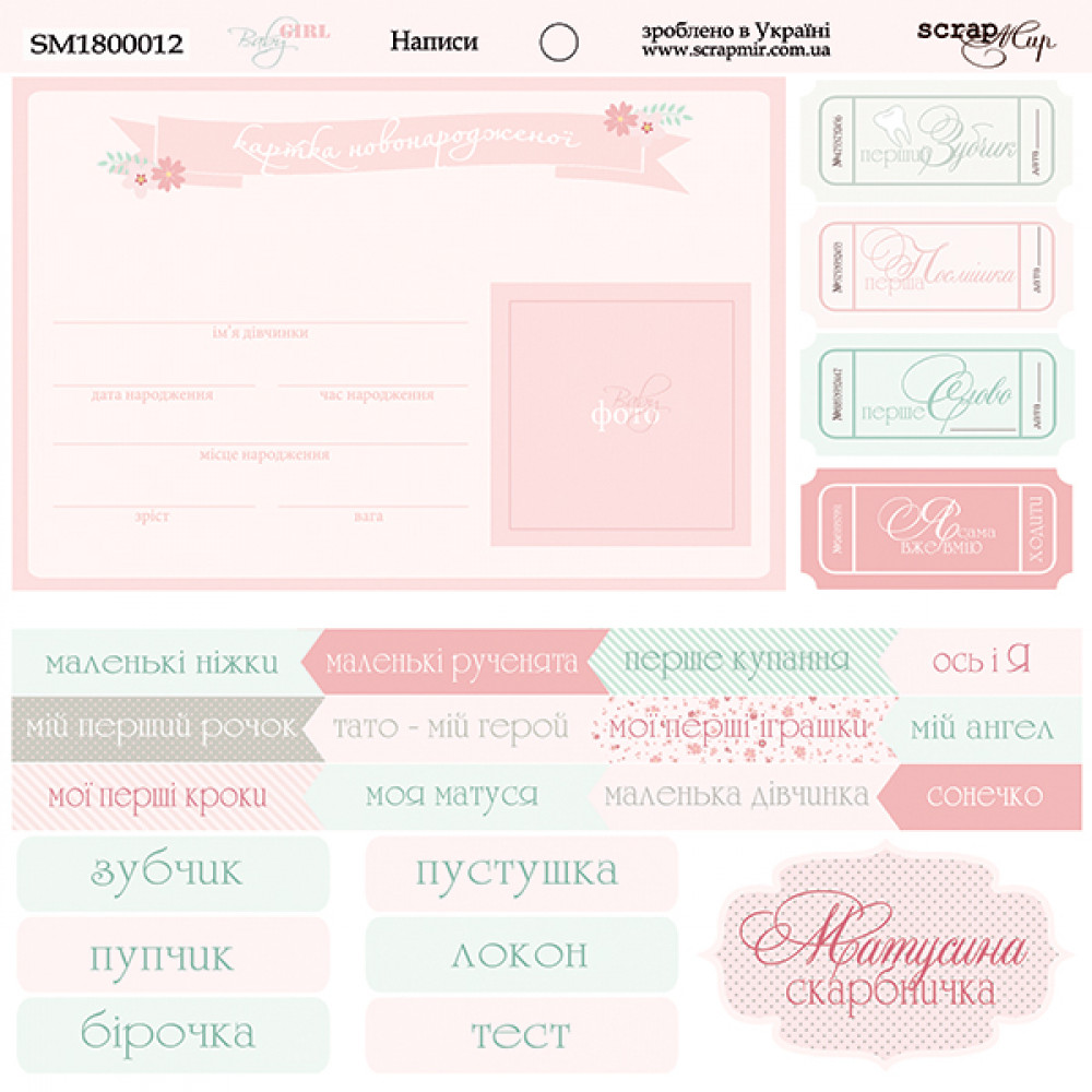 Написи українською мовою односторонній лист 20х20см Конверти від Scrapmir Baby Girl 1шт