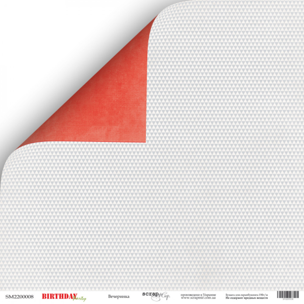 Лист двостороннього паперу 30х30см від Scrapmir Birthday Party 1шт