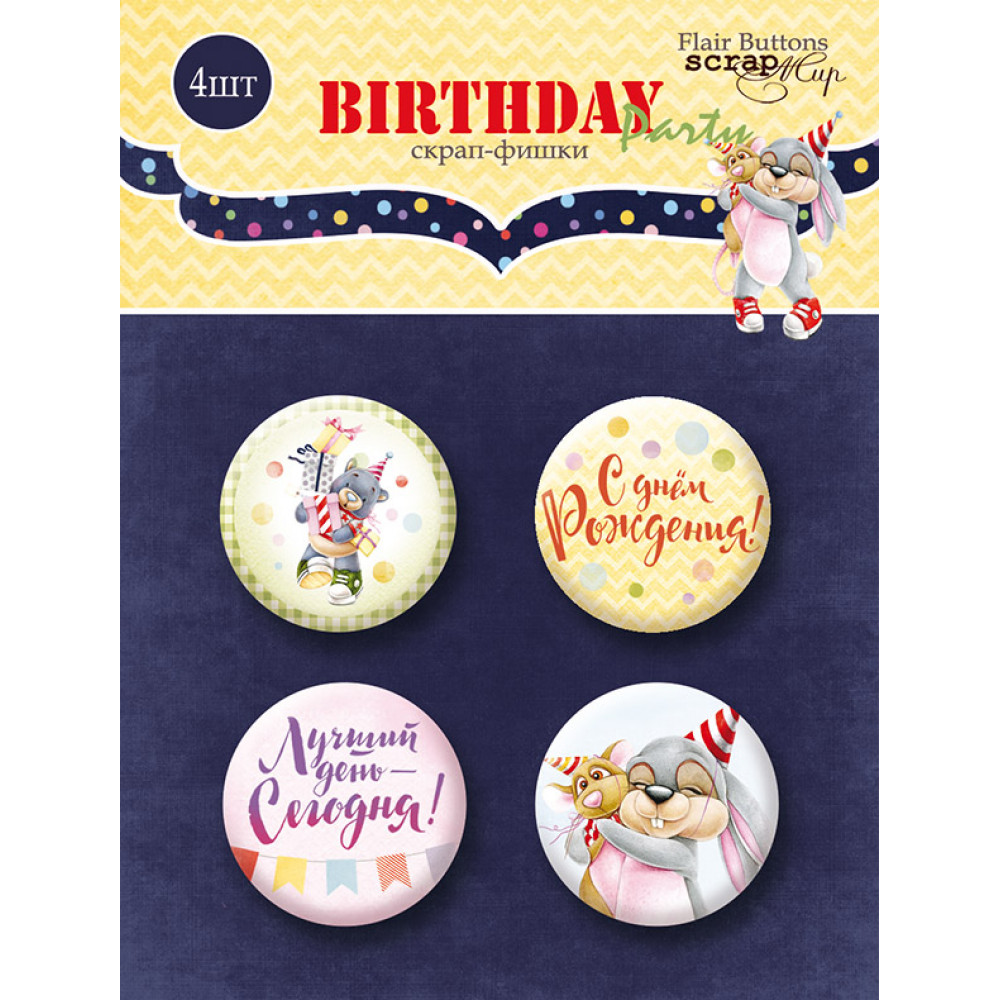 Набір скрап-фішок для скрапбукінгу 4шт від Scrapmir Birthday Party