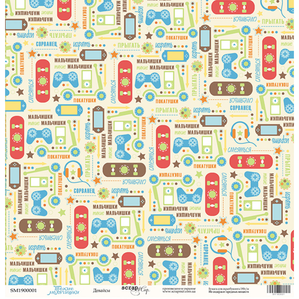 Лист одностороннього паперу 30x30 від Scrapmir з колекції Такие Мальчишки 1шт.