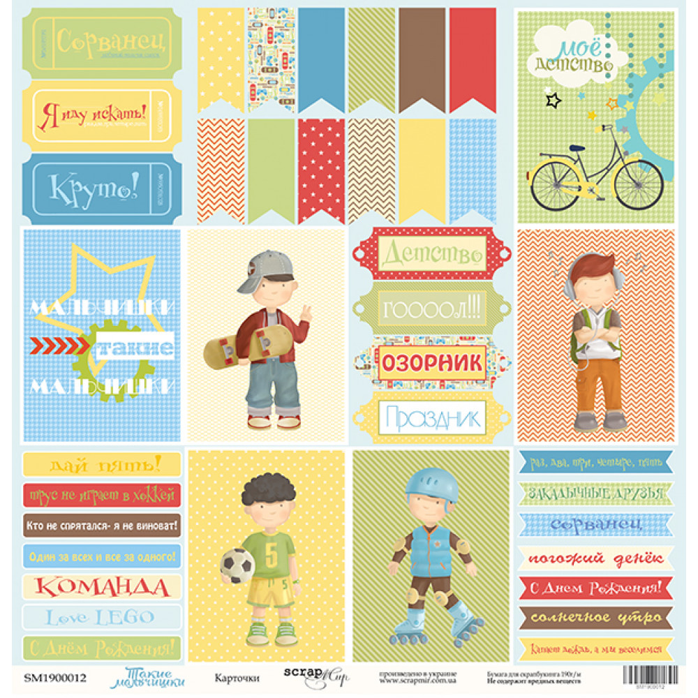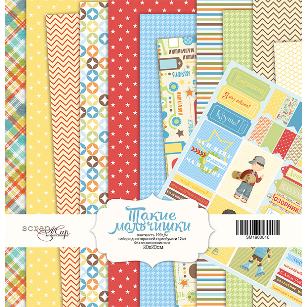 Набір одностороннього паперу 20х20см від Scrapmir Такие Мальчишки 12шт