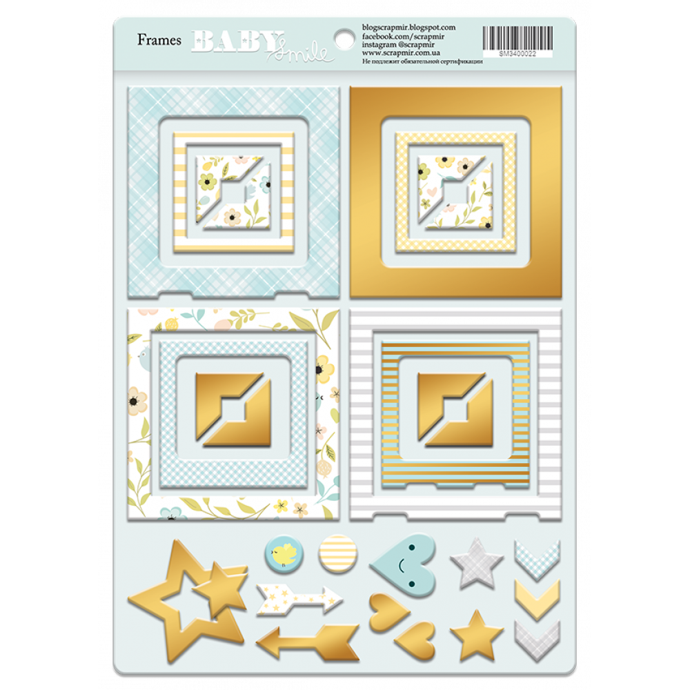 Рамки з чипборду з фольгуванням (золото) від Scrapmir Smile Baby 30шт