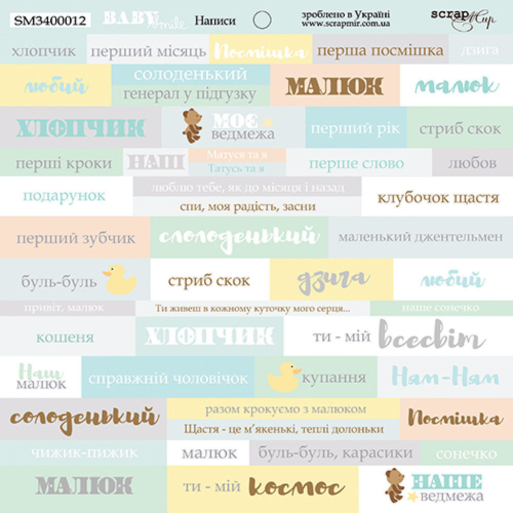 Написи українською мовою односторонній лист 20х20см Конверти від Scrapmir Smile Baby 1шт