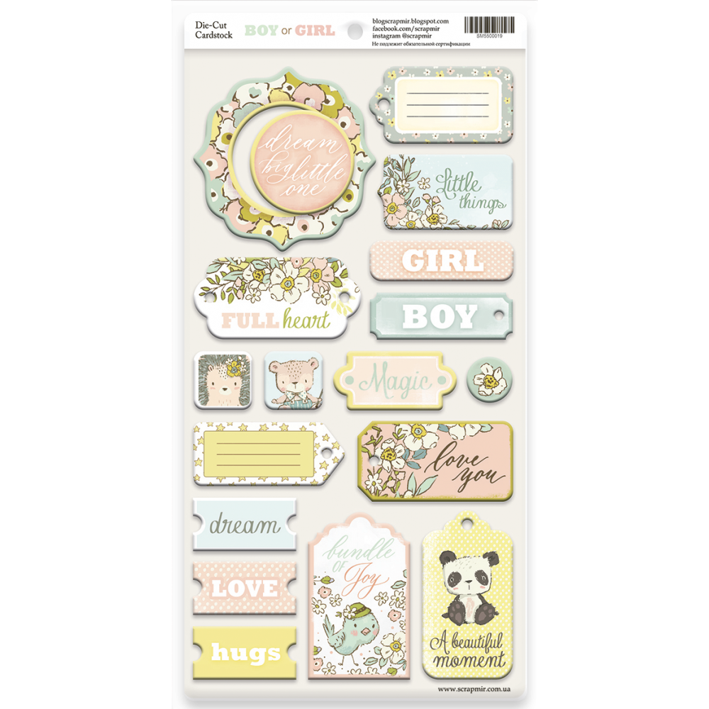 Чипборд для скрапбукінгу 18шт від Scrapmir Boy or Girl (ENG)