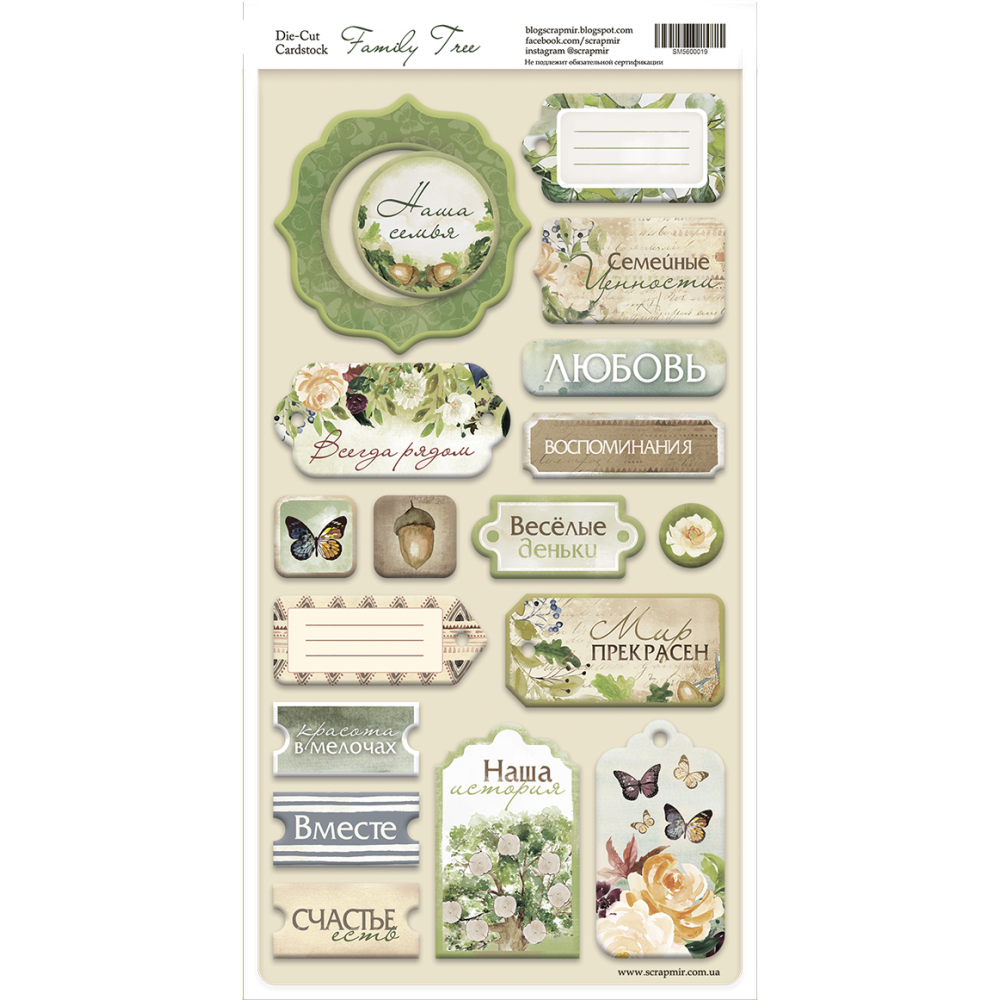 Чипборд для скрапбукінгу 18шт від Scrapmir Family Tree (RU)
