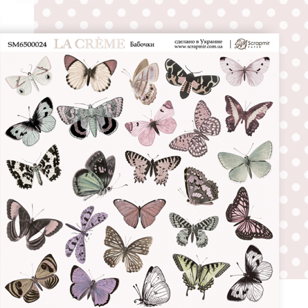 Лист двостороннього паперу 20х20см Метелики від Scrapmir La Creme 1шт