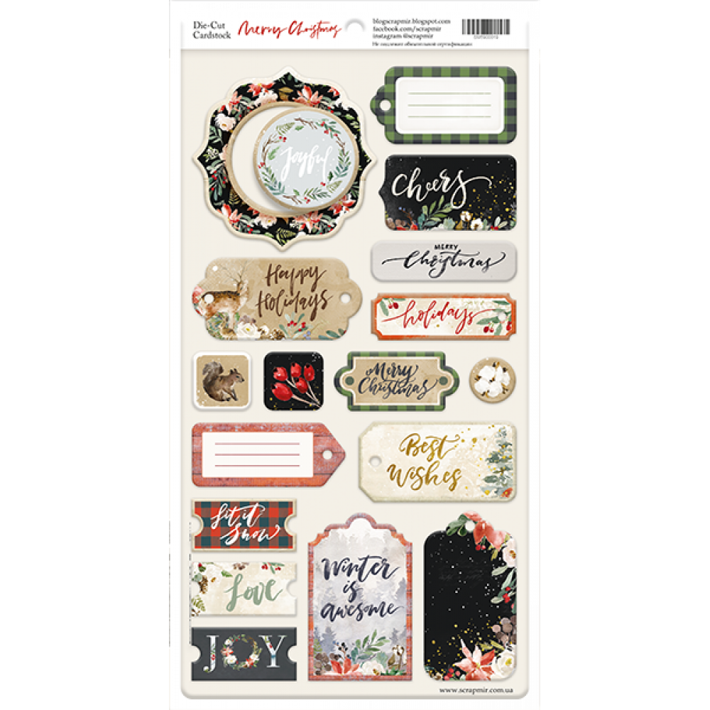 Чипборд для скрапбукінгу 18шт від Scrapmir Merry Christmas (ENG)