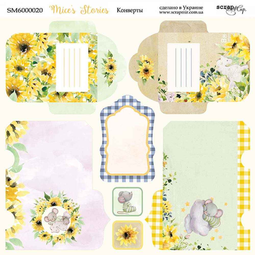 Лист двостороннього паперу 20х20см Конверти від Scrapmir Mice's Stories 1шт
