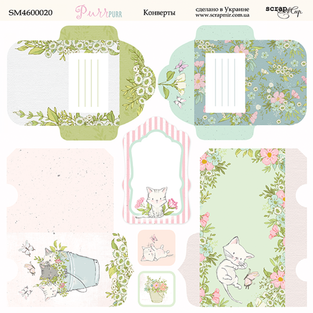 Лист двостороннього паперу 20х20см Конверти від Scrapmir Pur Pur 1шт