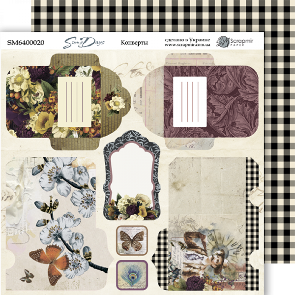 Лист двостороннього паперу 20х20см Конверти від Scrapmir Some days 1шт