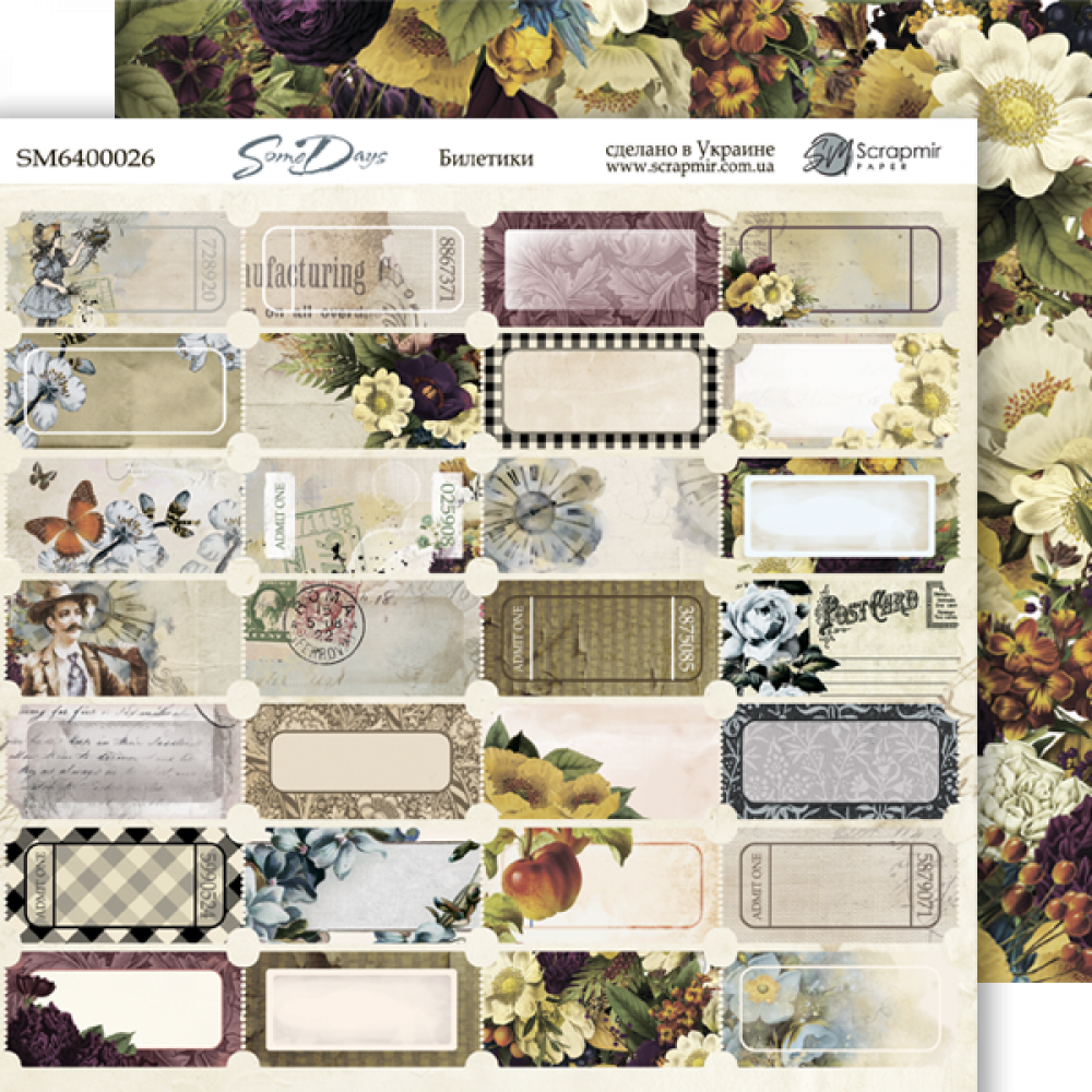 Лист двостороннього паперу 20х20см Квитки від Scrapmir Some days 1шт