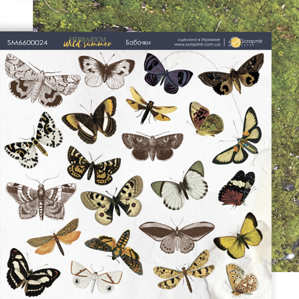 Лист двостороннього паперу 20х20см Метелики від Scrapmir Herbarium Wild summer 1шт