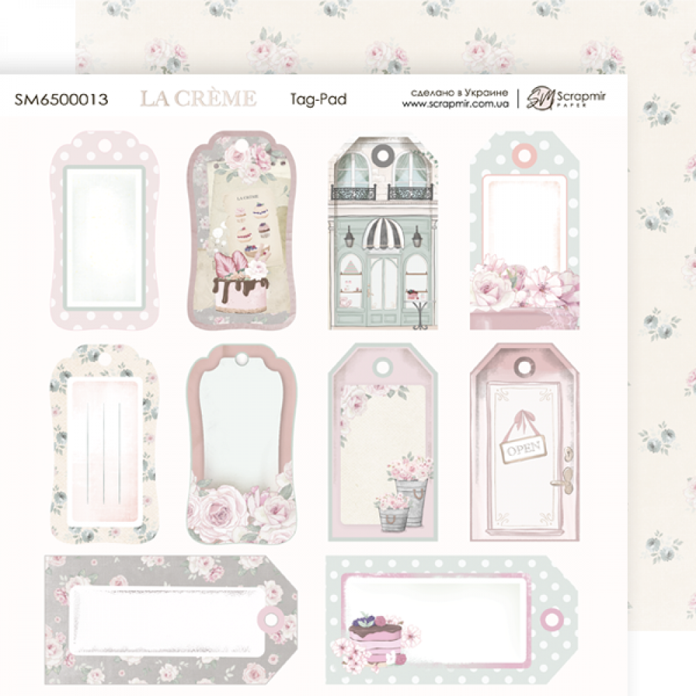 Лист двостороннього паперу 20х20см Tag-Pad від Scrapmir La Creme 1шт