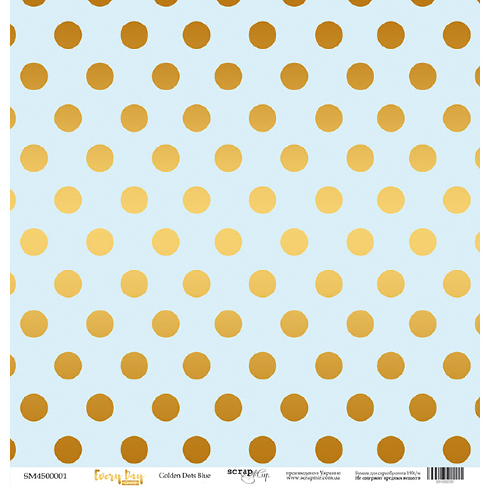 Лист одностороннього паперу із золотим тисненням 30x30 Golden Dots Blue від Scrapmir Every Day Gold 1шт.
