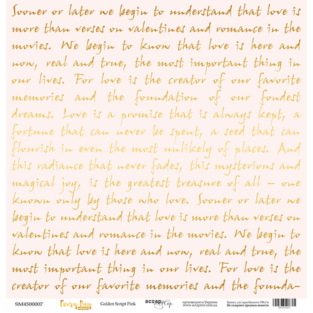 Лист одностороннього паперу із золотим тисненням 30x30 Golden Script Pink від Scrapmir Every Day Gold 1шт.