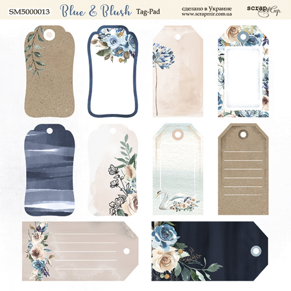 Лист двостороннього паперу 20х20см Tag-Pad від Scrapmir Blue & Blush 1шт