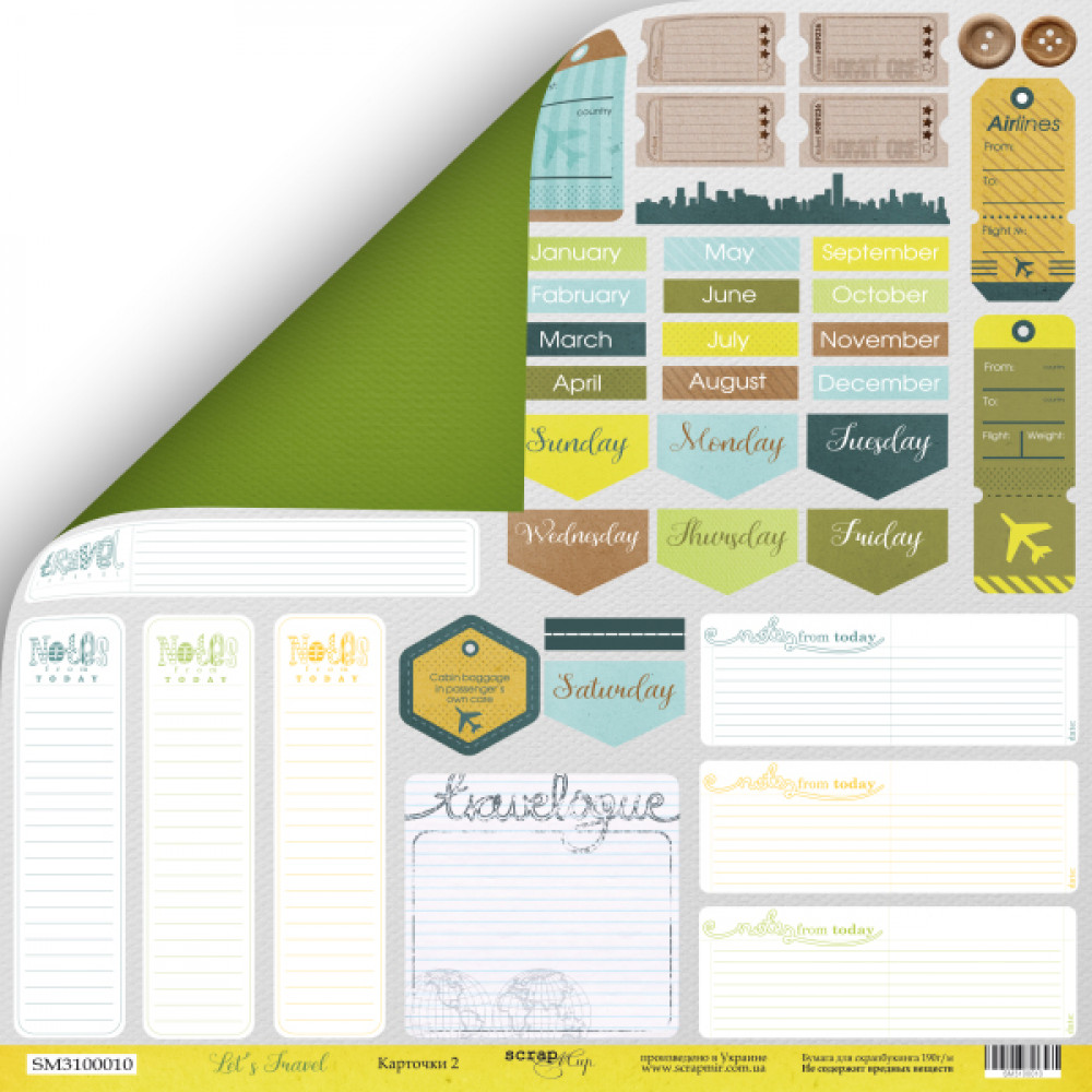 Лист двостороннього паперу 30х30см від Scrapmir Let's Travel 1шт