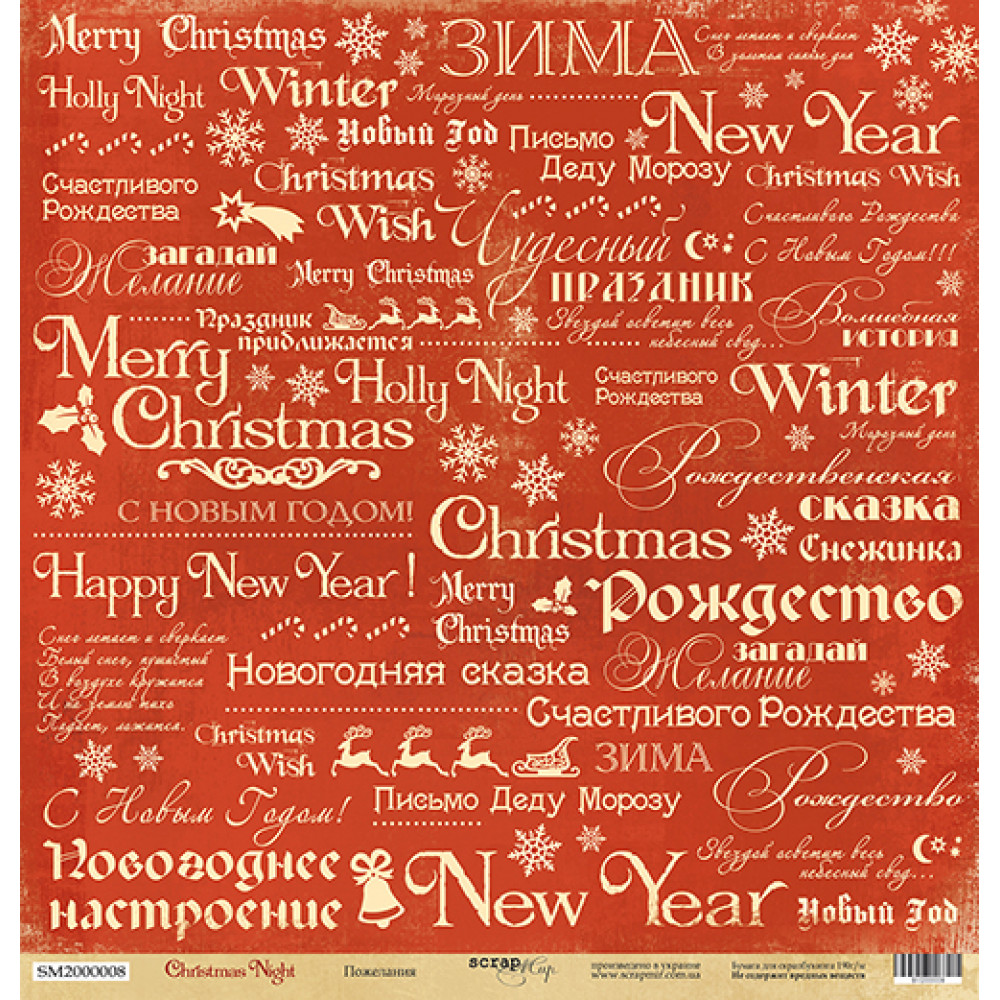 Лист одностороннього паперу 30x30 від Scrapmir з колекції Christmas Night 1шт.
