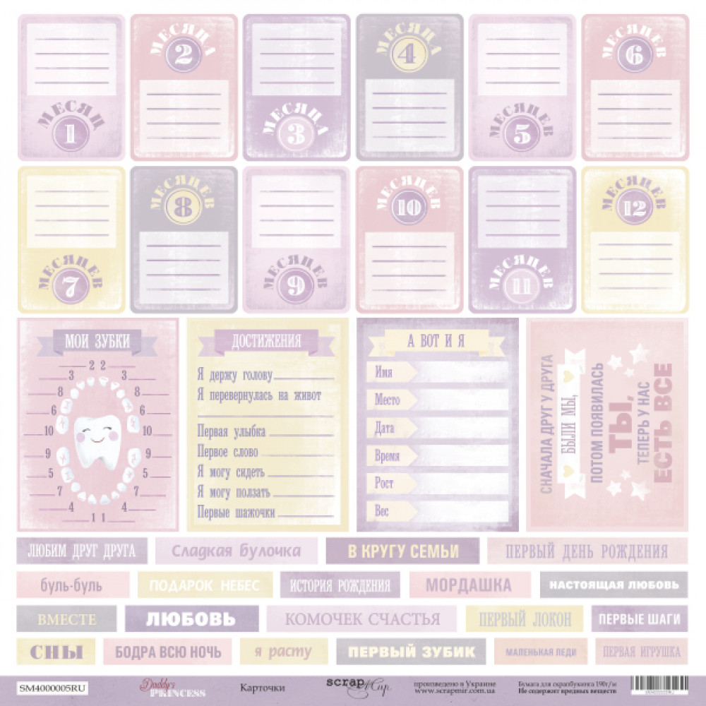 Лист одностороннього паперу 30x30 від Scrapmir з колекції Daddy's Princess 1шт.