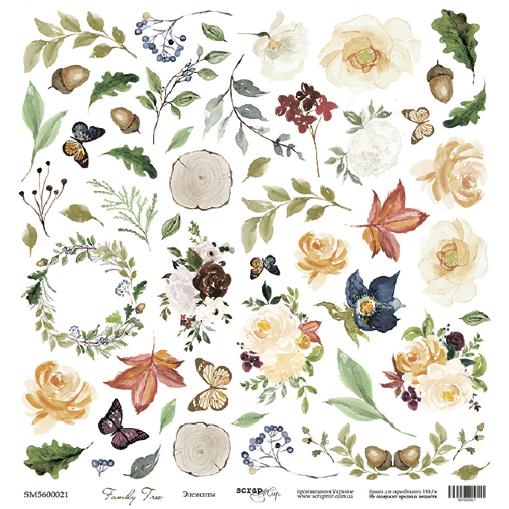 Лист одностороннього паперу 30x30 від Scrapmir з колекції Family Tree 1шт.