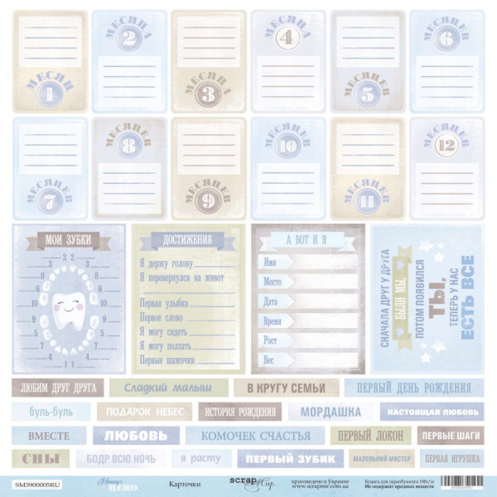 Лист одностороннього паперу 30x30 від Scrapmir з колекції Mommy's Hero 1шт.