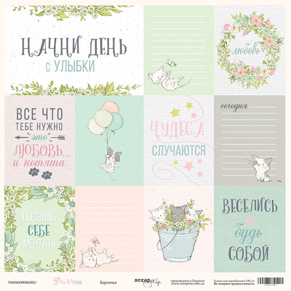 Лист одностороннього паперу 30x30 від Scrapmir з колекції Pur Pur 1шт.