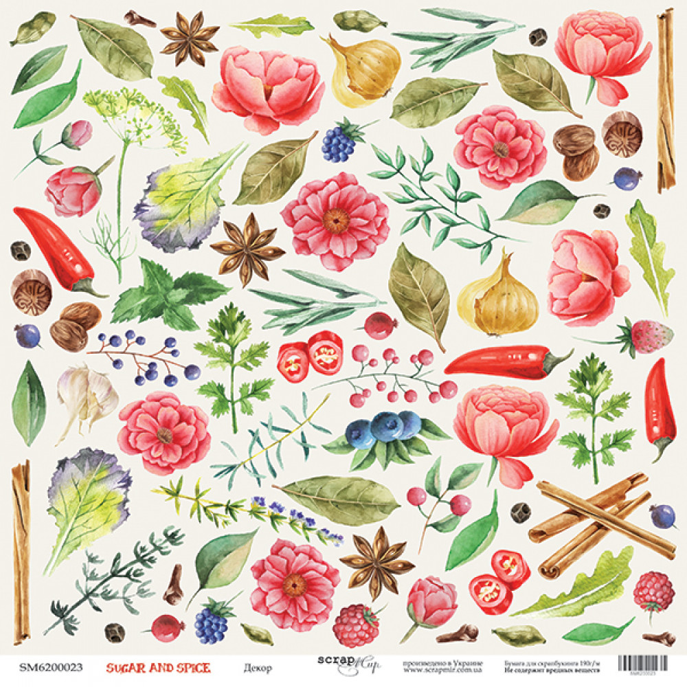 Лист одностороннього паперу 30x30 від Scrapmir з колекції Sugar and Spice 1шт.